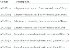 ADAPTADOR FUSIÓN A ROSCA MACHO NPT CON INSERTO METÁLICO