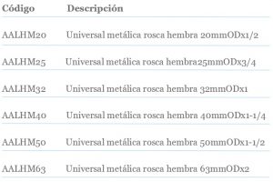 UNIÓN UNIVERSAL H. FUSIÓN/ H. ROSCA CON INSERTO METÁLICO-ROSCA NPT