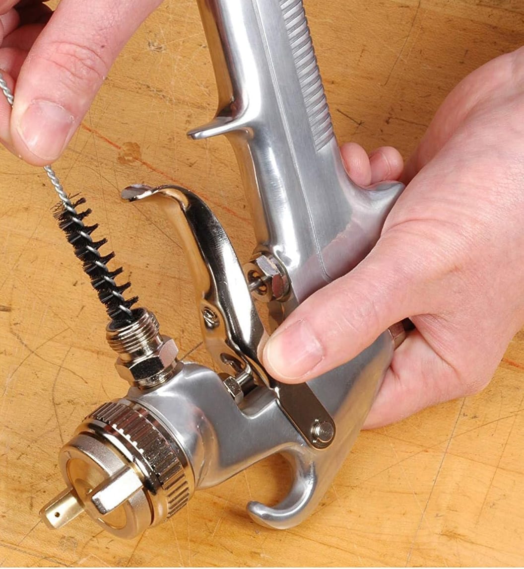 Este conjunto de 17 piezas s utiliza para limpiar y mantener las pistolas de pulverización en un entorno de producción. Los pinceles se pueden utilizar con cualquier diluyente de pintura y agentes de limpieza (disolventes).