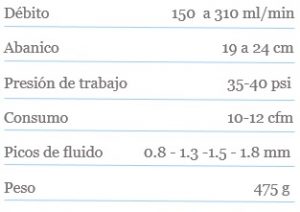 Pistola automática versátil, se puede usar en gran variedad de aplicaciones ya que se puede configurar con picos de fluido de diámetros desde 0.8 mm hasta 1.8 mm.
